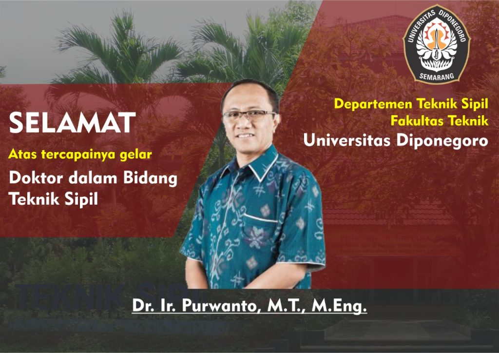 Semarang, 29 September 2021. fakultas Teknik Universitas Diponegoro menyelengarakan Ujian Tertutup Secara Online/Hybrid bagi Ir. Purwanto, MT., M.Eng. Dosen Universitas Diponegoro ini berhasil menyelesaikan Disertasinya dalam bidang Struktur.“Self Compacting Geopolymer Concrete (SCGC) Haunch Sebagai Perkuatan Balok Lentur di Zona Dekat Muka Kolom” merupakan topik yang diangkat dalam Disertasi penelitian. Hadir Tim Penguji Ir. M. Agung Wibowo, […]