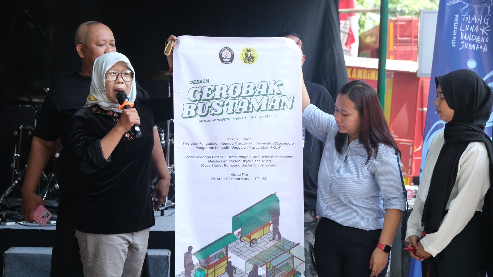 Minggu, 3 Maret 2024, Departemen Arsitektur, Fakultas Teknik, Universitas Diponegoro menyerahkan hasil karya desain Gerobak Bustaman kepada warga Kampung Bustaman, Semarang. Gerobak ini merupakan produk luaran dari program pengabdian kepada masyarakat Universitas Diponegoro dalam bentuk Penguatan Komoditi Unggulan Masyarakat (PKUM).