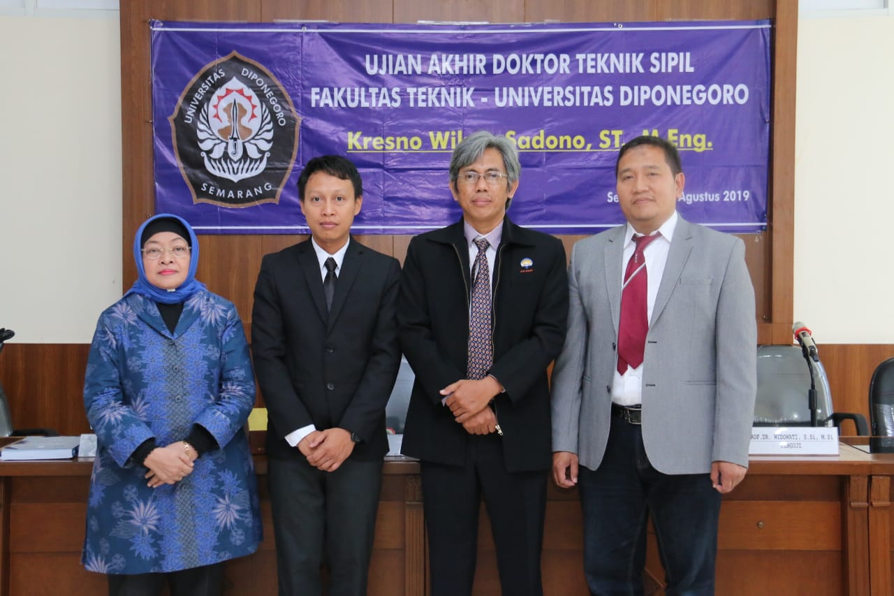 semarang, 09 Agustus 2019. Kampus UNDIP Fakultas Teknik menyelenggarakan Ujian Akhir Doktor. promovendus bernama Kresno Wikan Sadono, ST., M.Eng. merupakan Dosen Sipil UNDIP. penelitian berjudul Pengembangan Metode Meshfree Discontinuous Galerkin untuk Simulasi Perambatan Gelombang dipertahankan dihadapan para penguji. hadir Tim Penguji Ir. M. Agung Wibowo, MM, M.Sc, Ph.D (Ketua sekaligus Dekan FT), Prof. Dr. Ir. Suripin, M.Eng (Sekretaris sekaligus Kaprodi S3 Sipil), Prof. Dr. Ir. Sri Prabandiyani, RW, M.Sc (Promotor), Endra Susila, ST., MT., Ph.D (Ko-Promotor 1), Dr. Pranowo, ST., MT (Ko-Promotor 2), Prof. Dr. Widowati, S.Si., M.Si (Penguji), Dr. Ir. Windu Partono, M.Sc (Penguji). adapun pesan dari Dr. Pranowo, ST., MT penelitian ini sarankan tidak hanya digunakan dalam bidang geoteknik saja melainkan bisa digunakan semua bidang diantaranya Sumber Daya Air, Struktur, Transportasi, serta tidak menutup kemungkinan bisa digunakan diluar bidan teknik sipil, agar ilmunya lebih bermanfaat lagi. dengan keberhasilannya promovendus diberi predikat Sangat Memuaskan serta menambah koleksi kelulusan Doktor Teknik Sipil yang ke 67.