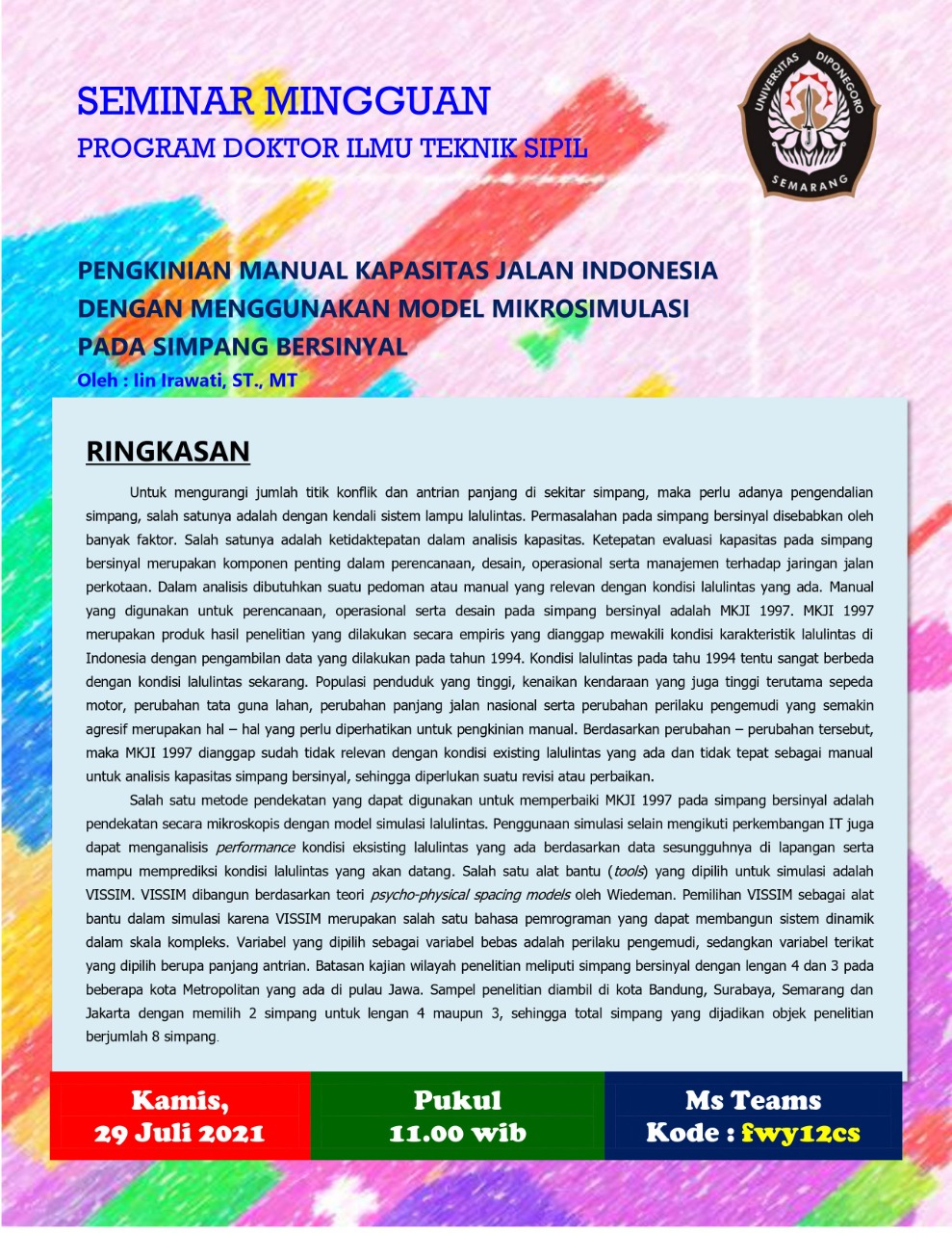 Pengkinian Manual Kapasitas jalan Indonesia Dengan menggunakan Model Mikrosimulasi Pada Simpang Bersinyal |
