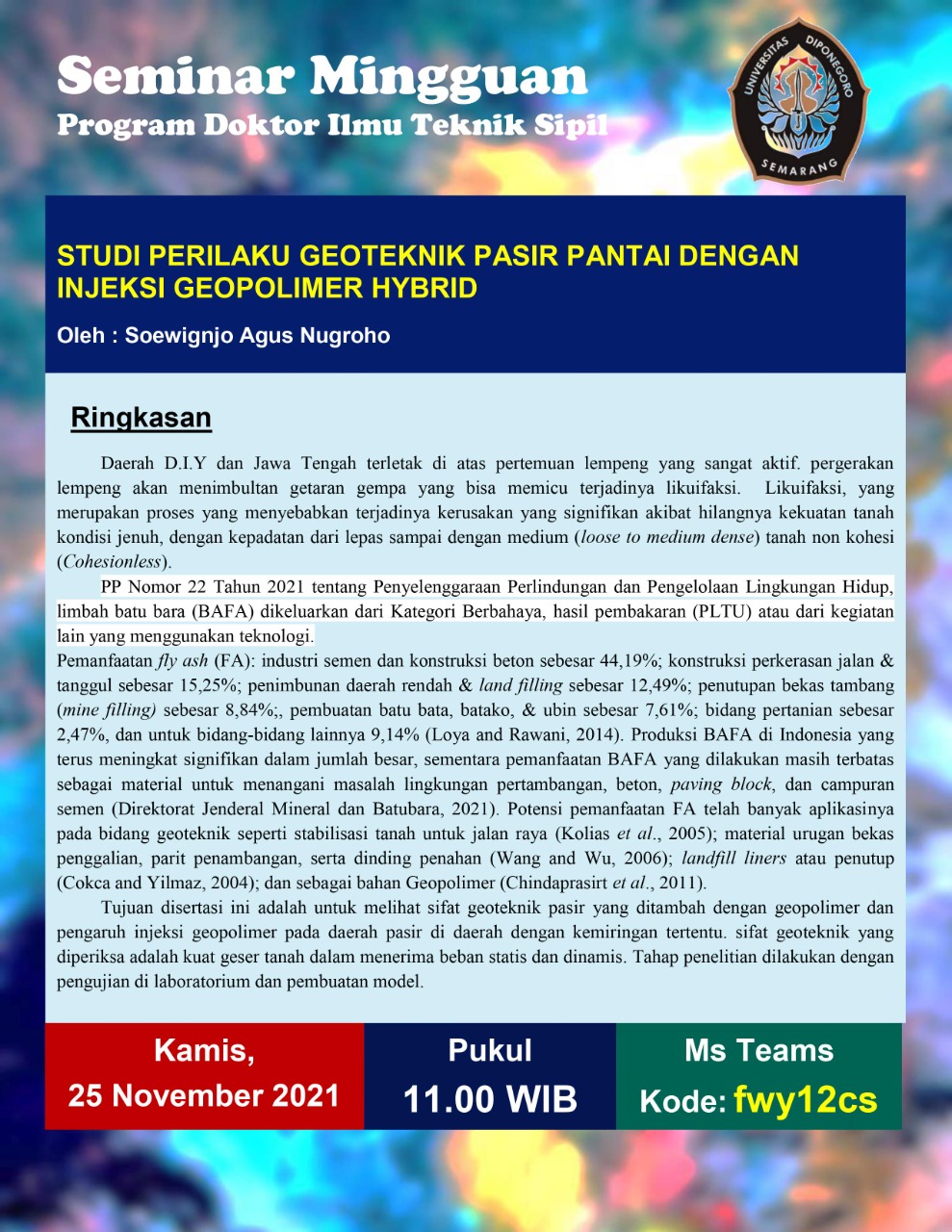 Studi Perilaku Geoteknik Pasir Pantai Dengan Injeksi Geopolimer Hybrid |