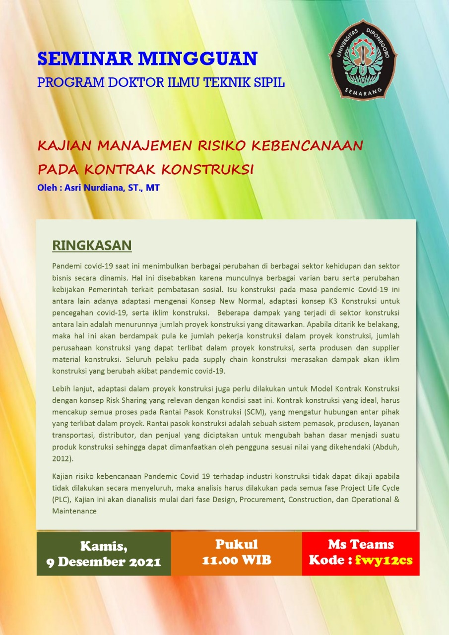 Kajian Manajemen Risiko Kebencanaan Pada Kontrak Konstruksi |