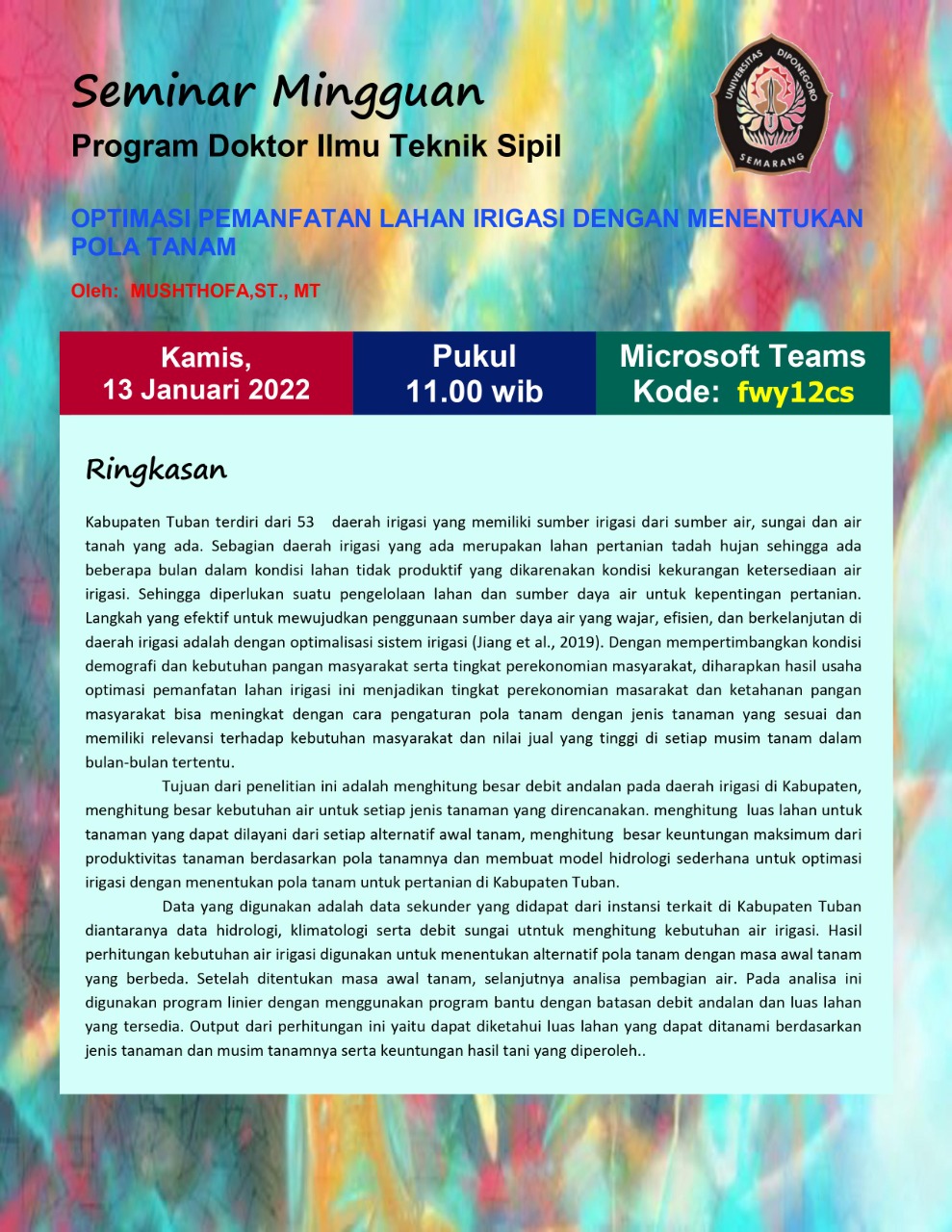 Optimasi Pemanfaatan Lahan Irigasi Dengan Menentukan Pola Tanam |