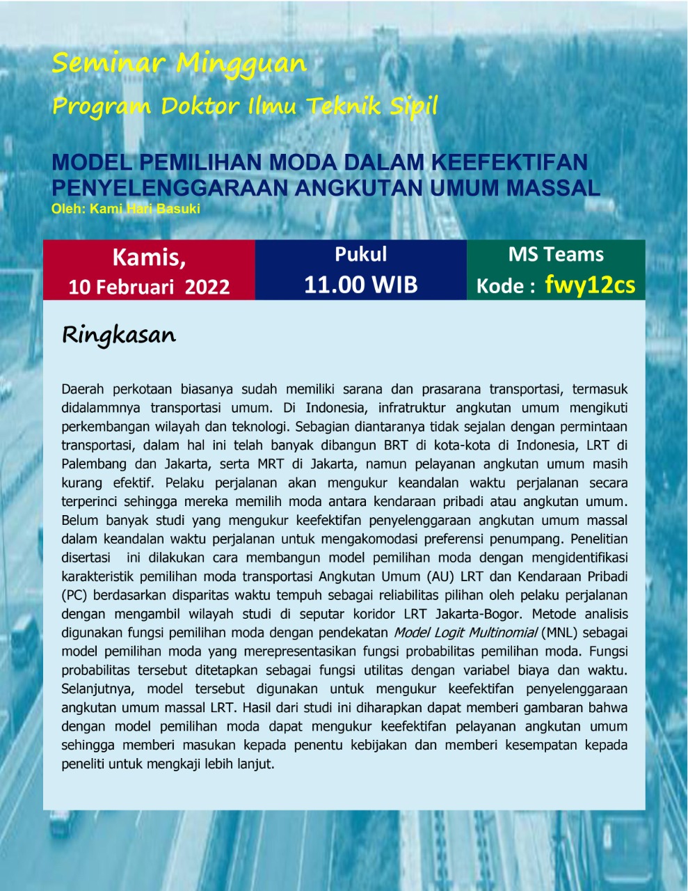 Model Pemilihan Moda Dalam Keefektifan Penyelenggaraan Angkutan Umum Massal |