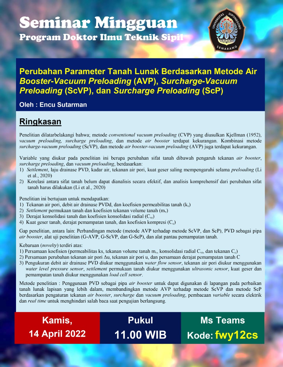 Perubahan Parameter Tanah Lunak Berdasarkan Metode Air Booster-Vacuum Preloading (AVP), Surcharge Preloading (ScP) |