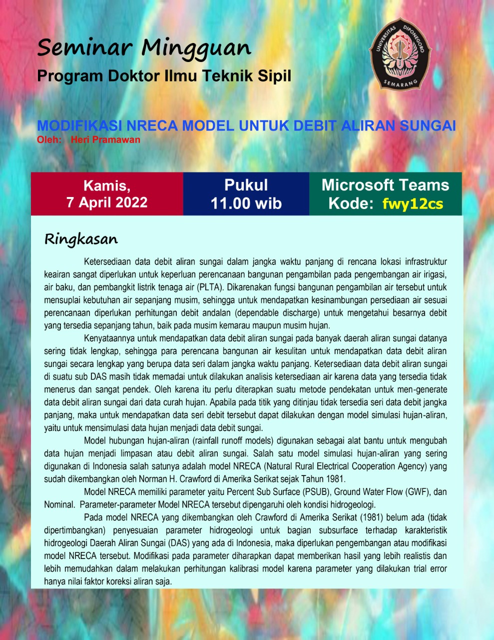 Modifikasi Nreca Model Untuk Debit Aliran Sungai |