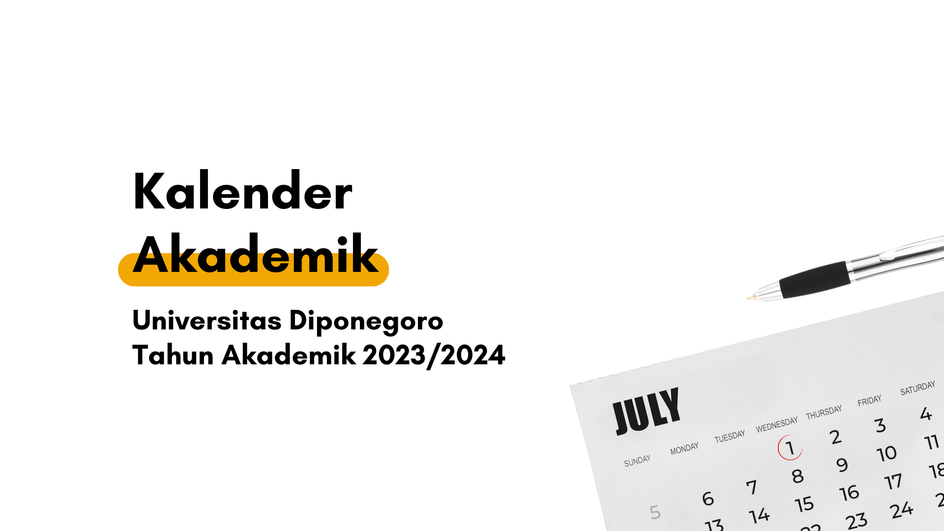 Dalam rangka untuk menertibkan, memperlancar, dan menyelaraskan penyelenggaraan pendidikan serta administrasi akademik yang ada di Fakultas, Sekolah, maupun Universitas, maka Universitas Diponegoro melalui Keputusan Rektor Universitas Diponegoro No. 152/UN7.A/HK/IV/2023 menetapkan Kalender Akademik Universitas Diponegoro Tahun Akademik 2023/2024.