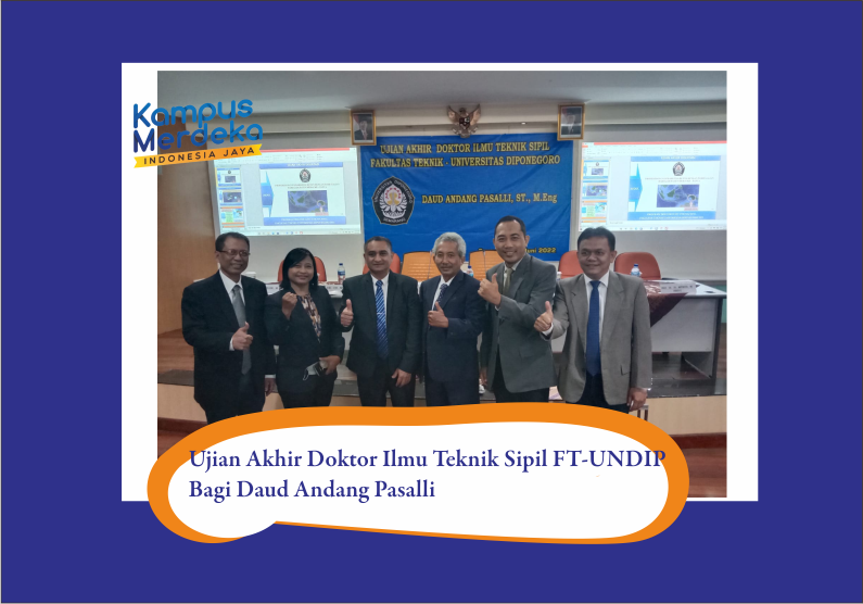 Semarang, 21 Juni 2022 Fakultas Teknik UNDIP menyelenggarakn Ujian Akhir Doktor (Ujian Tertutup) secara Offline bagi Daud Andang Pasalli, promovendus merupakan Dosen Musamus Merauke-Papua. Disertasi Penelitian Berjudul Properties dan Durabilitas Beton dengan pasir galian dari Kabupaten Merauke Papua mengantarkan Promovendus meraih Gelar Doktor. Prof. Dr. Ir. Sri Tudjono, MS. selaku Promotor dalam sambutannya ini bukan langkah Akhir melainkan langkah Awal untuk mengembangkan riset dan menggali potensi yang ada pada Diri Promovendus mengemban Gelar Doktor, Tak lupa Promotor mengucapkan selamat atas Gelar Doktor dan semoga ilmunya bermanfaat.
