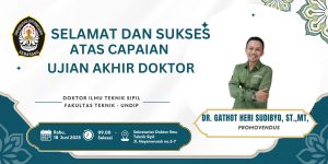 Capaian sidang akhir disertasi menghantarkan gathot Heri Sudibyo menyandang gelar Doktor lulusan ke 95 bagi Program Studi Doktor Teknik Ilmu Teknik Sipil UNDIP