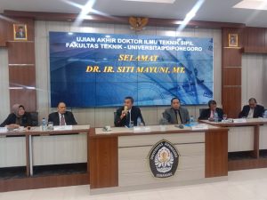 Semarang, Rabu 17 Mei 2023, Merupakan salah satu hari yang sangat istimewa bagi promovenda Ir. Siti Mayuni, MT. sebab pada hari itu promovenda melangsungkan ujian tertutup (Sidang Akhir). Ujian Tertutup merupakan tahap akhir dalam mencapai Gelar Doktor, pada Program Studi Doktor Ilmu Teknik Sipil (PSDITS) terdapat beberapa tahap ujian diantaranya ujian tahap awal adalah Proposal, tahap yang kedua adalah Seminar Hasil Penelitian SHP), tahap ketiga adalah Ujian Kelayakan dan tahap akhir adalah Ujian Tertutup.